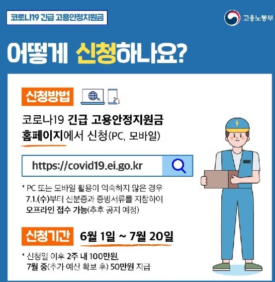 2020 긴급 고용안정 지원금 신청 긴급 고용안정 지원금 신청 최근 정부에서 코로나19여파로 고용보험의 사각지대에 놓여진 노동자들을 위해서 긴급 고용 안정 지원금 신청을 받는다고 발표했습��