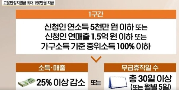 소득구간별 기준으로는 1구간은 가구소득 기준 중이소득 100% 이하 또는 신청인 연소득 5천만원 이하 (연매출 1억5천만원 이하)로 소득. 매출 25% 이상 감소 또는 무급휴직일수 총30일 (또는 월별 5)이면 프리랜서 재난지원금 신청 자격이 됩니다. 이는 위에 있으니 다시한번 확인 부탁드립니다.